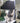 - Silver urn lamp base with black lamp shade